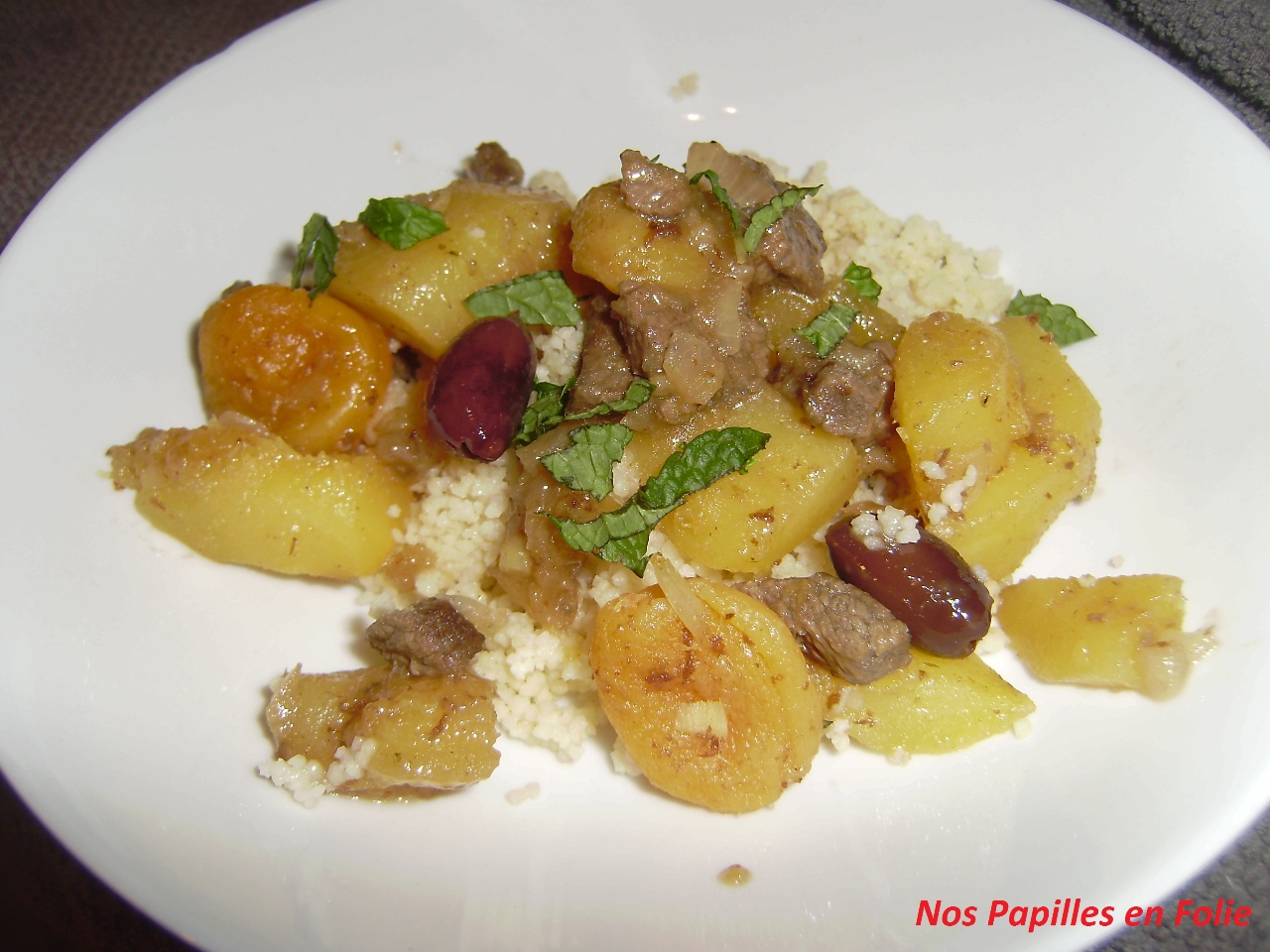 Servir l'agneau ou le boeuf accompagné de semoule et saupoudrer de menthe fraîche